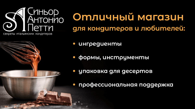 Под именем Синьора Антонио Петти скрывается компания, которая специализируется на оптово-розничной продаже профессиональных товаров для кондитеров и пекарей высокого качества. В Москве есть магазин, который можно посетить, познакомиться с ассортиментом, сравнить и выбрать необходимое для кондитеров; также к вашим услугам доступны услуги интернет-магазина, где представлены те же самые товары и даже больше - товары доступные "под заказ".