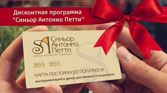 Во всех наших магазинах действует гибкая система скидок, направленная на построение долгосрочных отношений с клиентами и позволяющая приобретать интересующую продукцию для кондитеров на выгодных условиях.