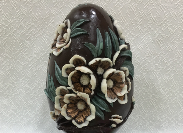 По такому же принципу делаем и большое шоколадное яйцо — прямо произведение Фаберже! Используем пластиковую форму Decosil — «Яйцо» (арт. DS 12500).