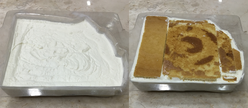 Заполняем форму, используя кондитерский мешок – если полученная масса достаточно жидкая, то можно просто залить ее в форму. Обязательно постучите формой по столу, чтобы равномерно распределить массу и убрать все пузырьки, которые потом могут оказаться на поверхности торта.