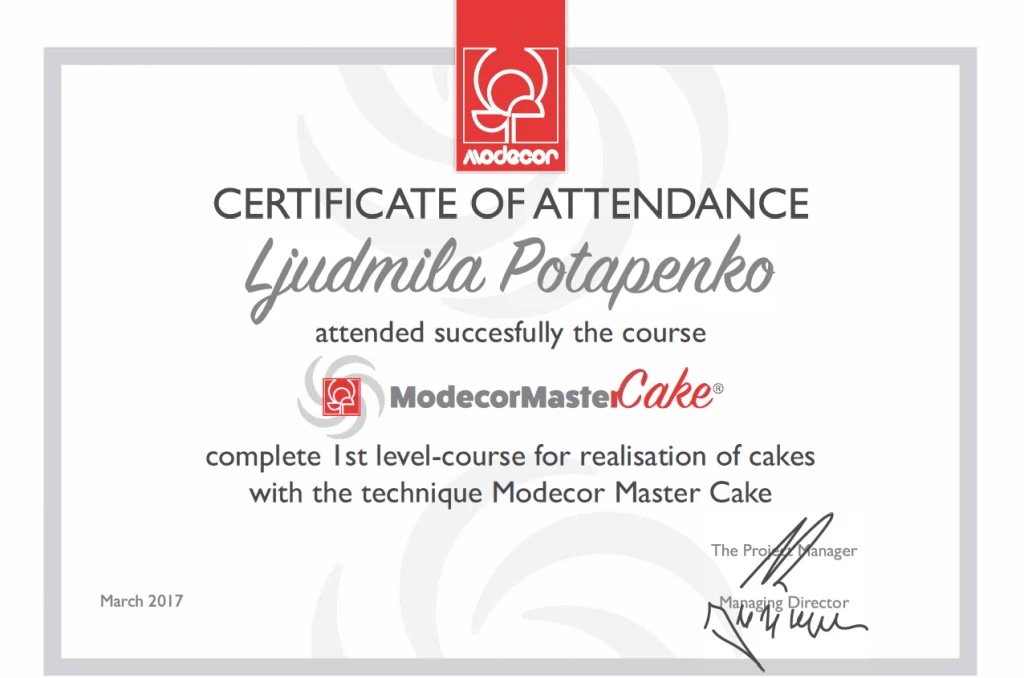 А теперь главная новость. Наши партеры – компания Modecor совместно с Quenary Academy разработали программу по обучению данной технике. Она называется Master Cake. И я с радостью сообщаю, что теперь технолог-кондитер компании «Синьор Антонио Петти», прошедший курс обучения Master Cake, готов поделиться с вами всеми секретами этой техники!