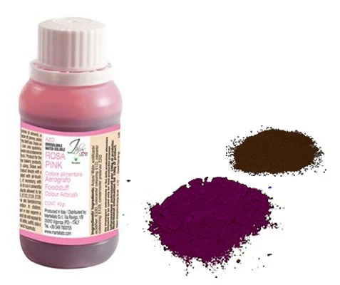 - использование в качестве жидкого красителя: краситель разводится в алкоголе в соотношении 1 грамм красителя и 2 грамма алкоголя. Наносится на поверхность с помощью кисточки или распыляется при помощи кондитерского аэрографа. Данный способ позволяет более четко прорисовывать узоры и рисунки на поверхности шоколада, мастики, сливок и геля.