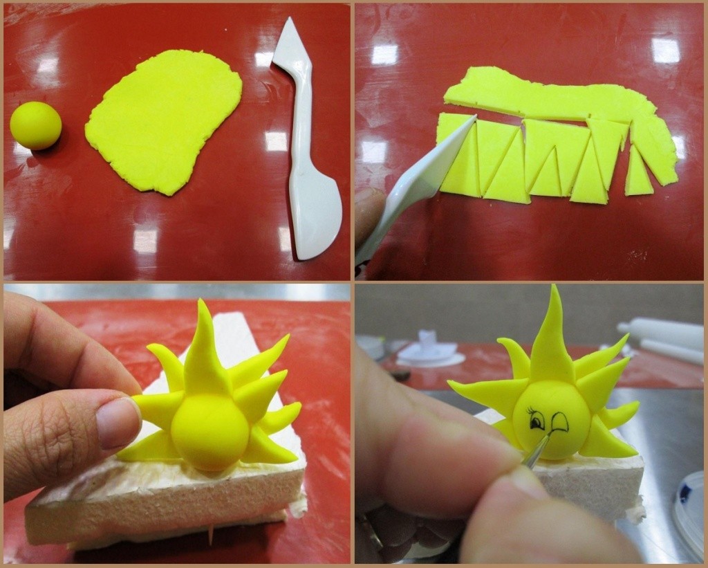 Теперь, при помощи тонкой кисти рисуем солнышку личико и не забываем про улыбку :)
