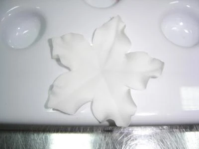 Следующим движением формируем рельеф нашего будущего цветка, проводя по середине лепестка от края к центру и укладываем заготовку на поднос Martellato с ячейками.