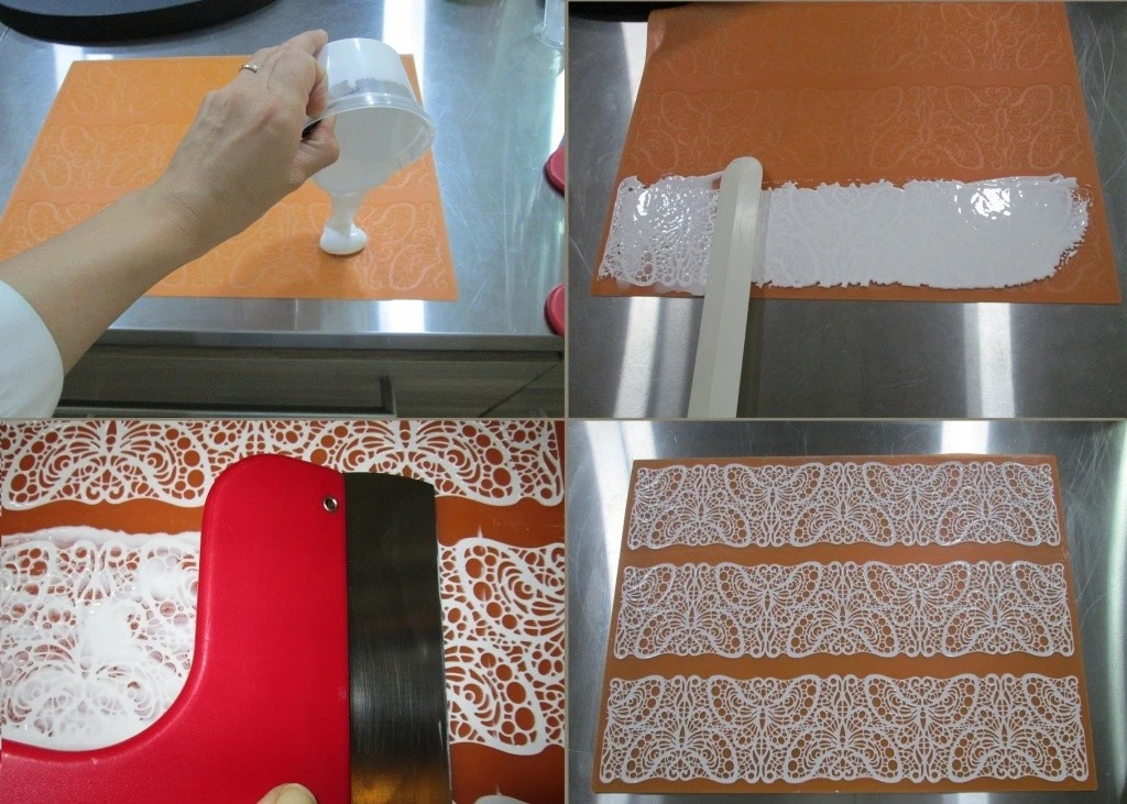 Готовую массу можно хранить в течении 7 дней в холодильнике. При этом она должна быть герметично закрыта. Маленький секрет - в последнюю минуту взбивания нужно снизить скорость, это нужно для того, чтобы лишние пузырьки воздуха ушли, а структура стала более эластичной. Так как наличие пузырьков будет препятствовать удачному извлечению из коврика кружева.