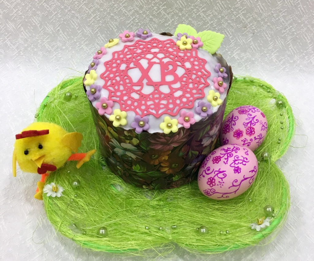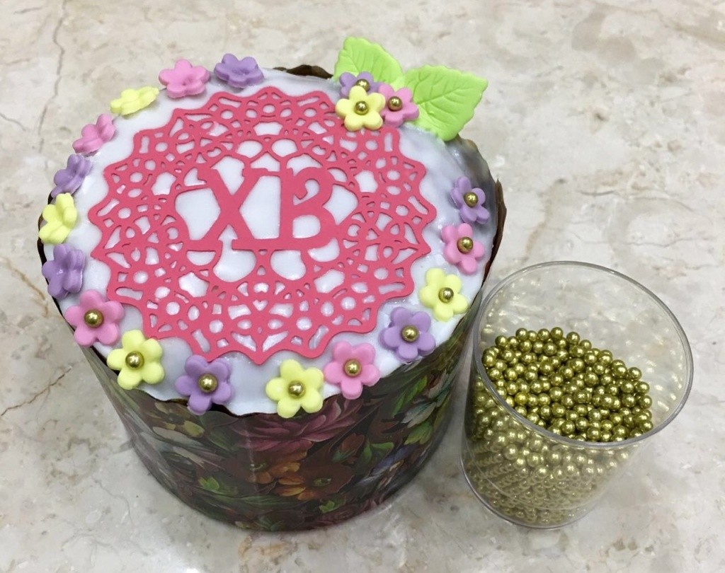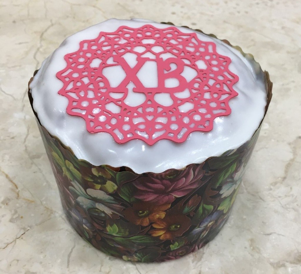 После того как пасхальное кружево высохнет, мы можем его использовать для декора куличей. На глазированную поверхность (когда помадка немного подсохнет) помещаем наше украшение.