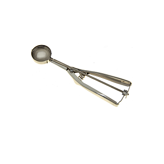 Специальный прибор из пищевого металла позволяет удобно черпать замороженную массу и выкладывать ее аккуратными шарами.