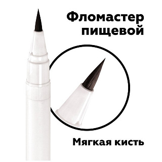 Фломастер. Уникальный стержень из фетра позволяет имитировать мазки кисти и рисовать тонкими линиями пищевого красителя на плотных поверхностях: айсинге, глазурях, мастике, пастилаже, марципане, вафельном декоре и яичной скорлупе.