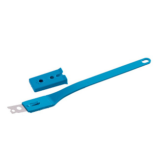 Нож со сменными прямыми лезвиями и пластиковой ручкой.