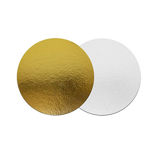 Главная страница›Подложки и подставки под торт›Подложки 1.3мм. под торт›Подложка круглая, золотой/белый, 28см., 1.5мм., 1шт.