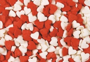 Главная страница›Украшения для тортов›Посыпки кондитерские›Посыпки - "Сердечки красные, белые", 0.75кг.