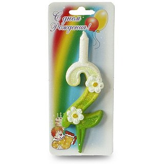 Главная страница›Украшения для тортов›Свечи и фейерверки для тортов›Свеча с ромашками - "Цифра 2" (233063)