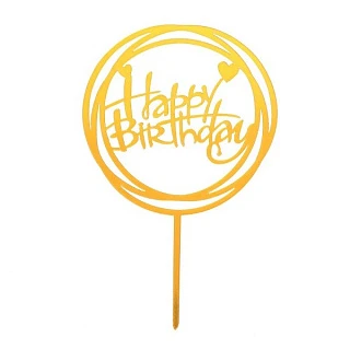 Главная страница›Украшения для тортов›Топперы для торта›Топпер для торта - "С днём рождения", круглый, золотой
