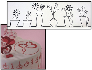 Главная страница›Инструменты для кондитера›Трафареты›Пластиковый трафарет - "Вазы с цветами", 90*340мм. (40-W170)