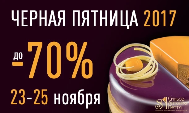 Только 3 дня! 23, 24 и 25 ноября в магазине будут действовать скидки от -15% до -70% на весь ассортимент!* Совершайте покупку в розничном магазине «Синьор Антонио Петти» или оформляйте заказ на сайте. Ваша скидка будет ждать вас!