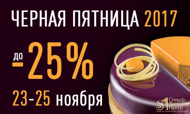 Только 3 дня! 23, 24 и 25 ноября в магазине будут действовать скидки от -20% до -25% на весь ассортимент!* Совершайте покупку в розничном магазине «Синьор Антонио Петти» или оформляйте заказ на сайте. Ваша скидка будет ждать вас!