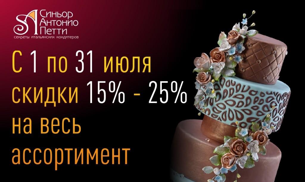 Друзья! Объявляем месяц летних суперскидок в «Синьор Антонио Петти» – Москва! С 1 по 31 июля мы снижаем цены на 15% – 25% более чем на 3 000 товаров в каталоге! Совершайте покупку в розничных магазинах Москвы или оформляйте интернет заказ на сайте. Ваша скидка будет ждать вас!