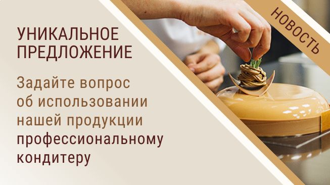 7 сентября 2021 года на нашем сайте открыт раздел «Вопросы кондитеру», где Вы сможете задать вопросы об использовании нашей продукции профессиональному кондитеру-технологу. Доступно для всех клиентов, зарегистрированных в личном кабинете на нашем сайте.