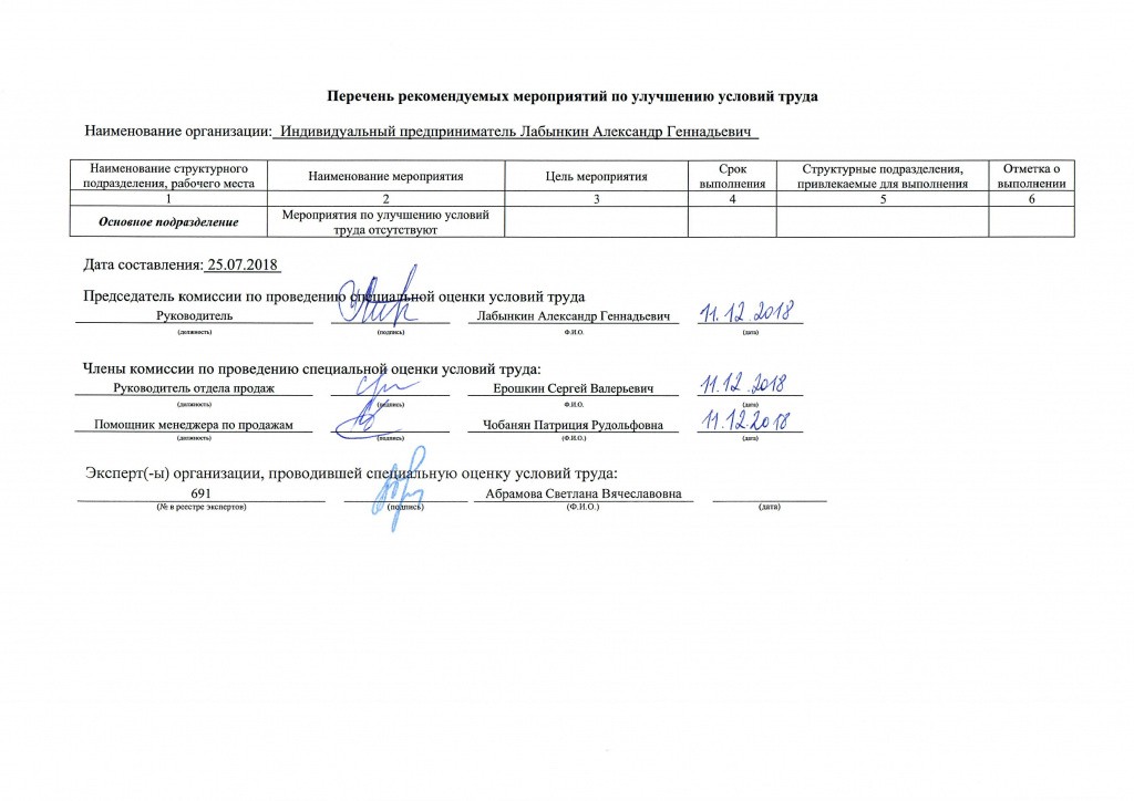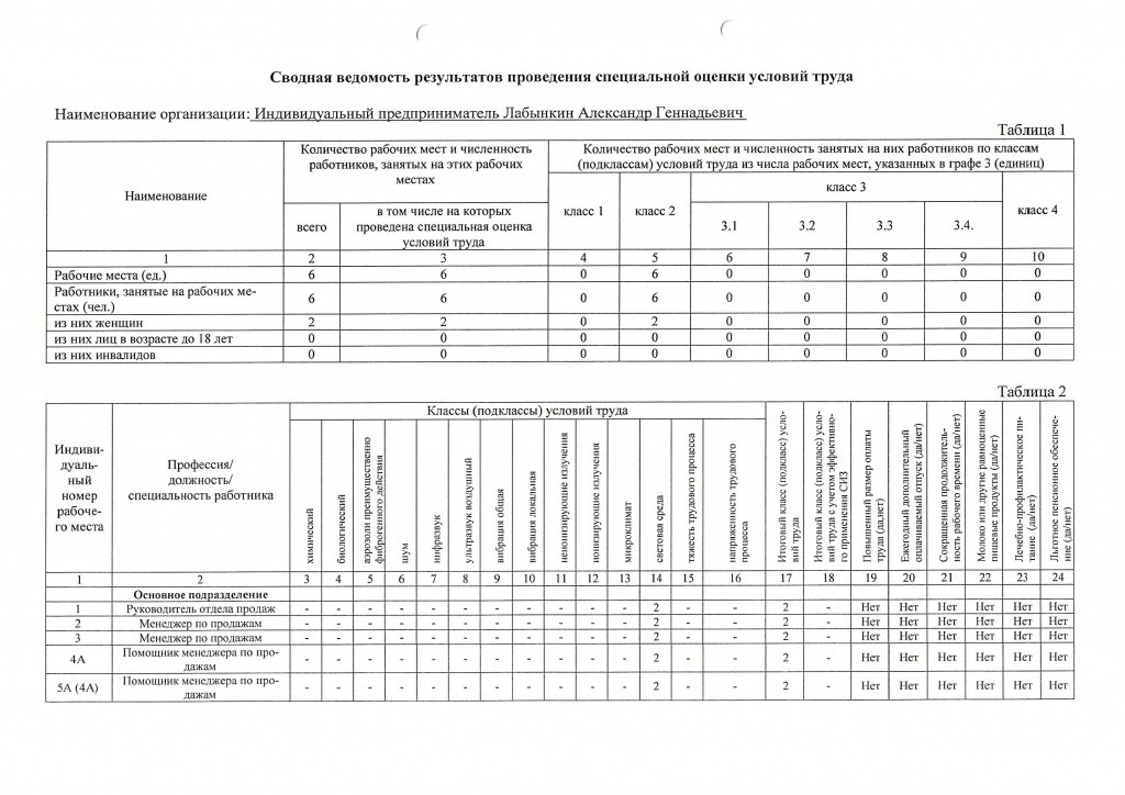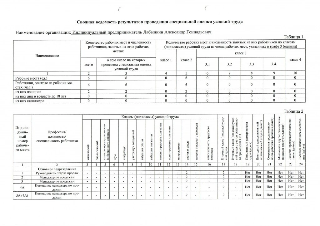 Сводные данные о результатах проведения СОУТ